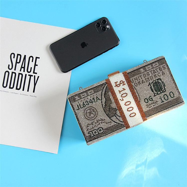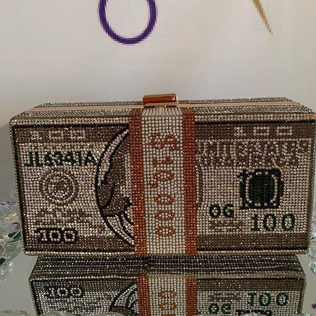 Perfectly oversized to fit your iPhone X, our dazzling bag is rendered in colorful handset crystal and features a 24 karat gold plated money wrap detail in glowing aurum crystal.