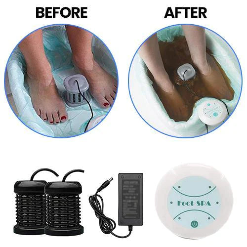 This natural treatment works by osmosis. The ionizer which is placed in the foot bath releases ions through the water and into your body. Your cells are energized by the ions and are finally able to release the toxins, oils, acids, fats, heavy metals, cellular debris and waste that have accumulated over your lifetime. This is why water changes.