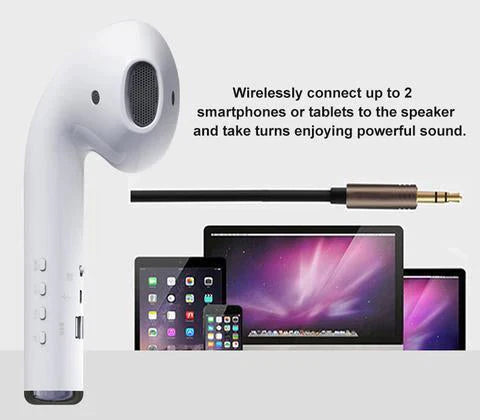 ✓ This speaker is designed for sleek simplicity and built to look like a huge AirPod. Developed to be durable and compact to take on any adventure.