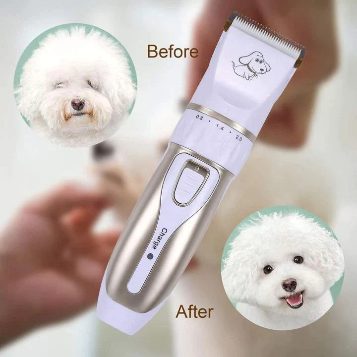 - Cordless design for easy use. The pet grooming kit is equipped with a charger. Charging for five hours, it can sustain uses of 70 minutes.