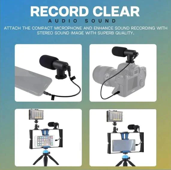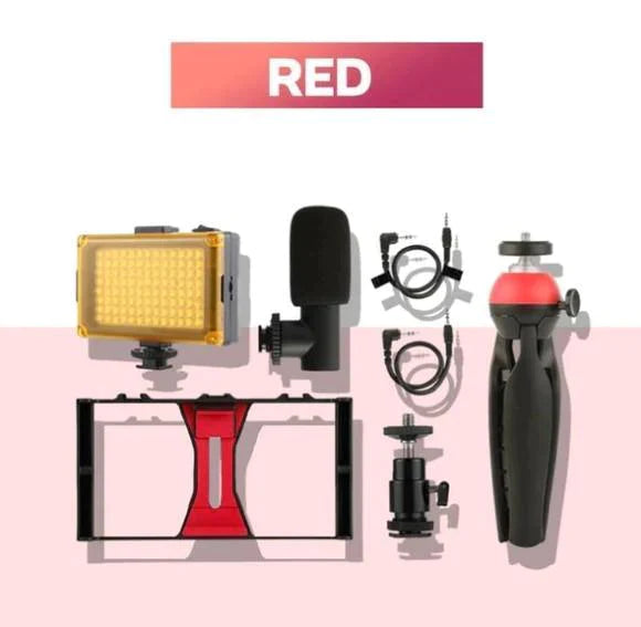 Set up and turn your smartphones into professional video recording equipment. Phone All-in-one Filming Kit comes with all the essentials to start your video documentation, vlogging, and live streams with professional recording. Set up LED light, Tripod, microphone, and bracket and start capturing your memorable and favorite moments with your smartphone.