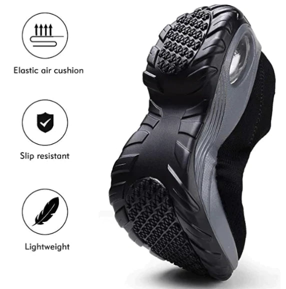- MD out-sole with air cushion. The high-quality rubber material is non-slip and wear-resistant. Platform measures approximately 1.96"