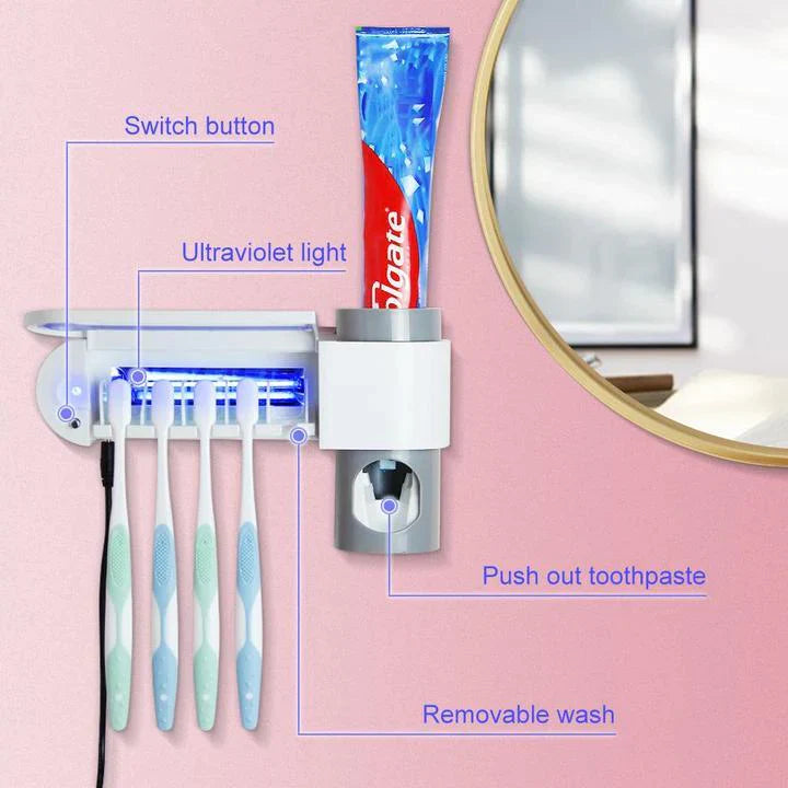 Toothbrush Sanitizer Family Case with UV Light and Toothpaste Dispenser