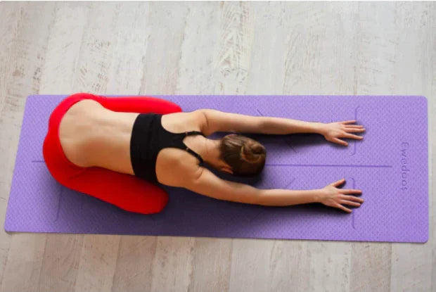 Introducing YOGA ALIGNING MAT designed with a printed position line to help you align your body perfectly on the mat so you can concentrate, have a perfect position and absorb all of the health and mental benefits that come with practicing Yoga.